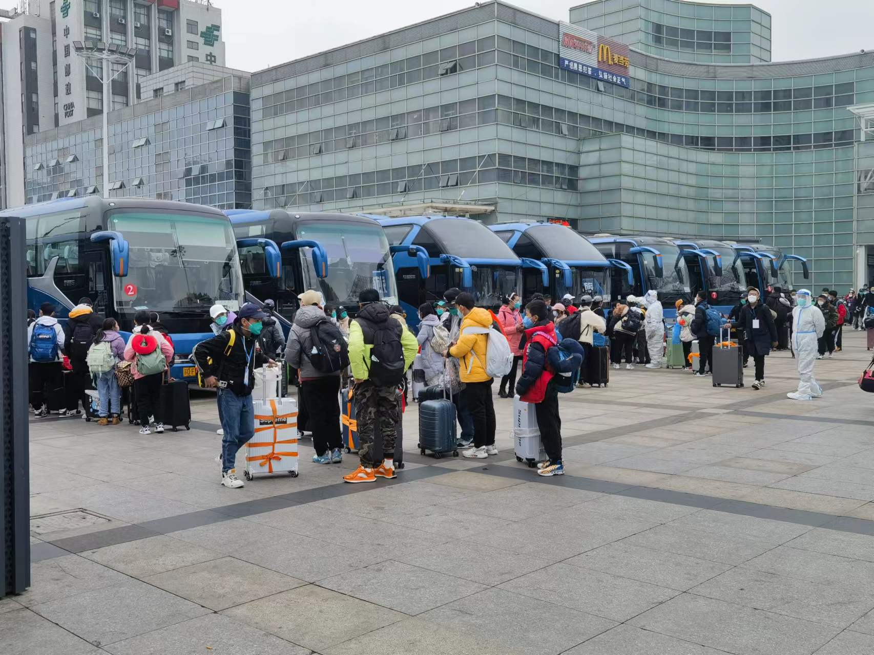 當(dāng)天,19輛轉(zhuǎn)運(yùn)大巴早上8:00準(zhǔn)時(shí)出發(fā),到達(dá)火車(chē)站南廣場(chǎng)后,在調(diào)度員的指揮下,整齊停放在引導(dǎo)處,原地等待。10:11,專(zhuān)列進(jìn)站,600多名西藏學(xué)生陸續(xù)出站,由駕駛員引領(lǐng)至對(duì)應(yīng)的大巴車(chē),并在駕駛員的幫助下,安放行李、更換口罩、登車(chē)入座。僅用30分鐘,所有學(xué)生全部安排妥當(dāng),轉(zhuǎn)運(yùn)大巴逐一開(kāi)往對(duì)應(yīng)酒店。一路上安全平穩(wěn),到達(dá)酒店后,駕駛員指揮學(xué)生有序下車(chē),拿好行李,跟酒店做好交接,辦理移交手續(xù)。隨后,車(chē)輛、駕駛員立即做消殺,下午2點(diǎn)左右,大巴全部返回,轉(zhuǎn)運(yùn)任務(wù)圓滿(mǎn)完成。