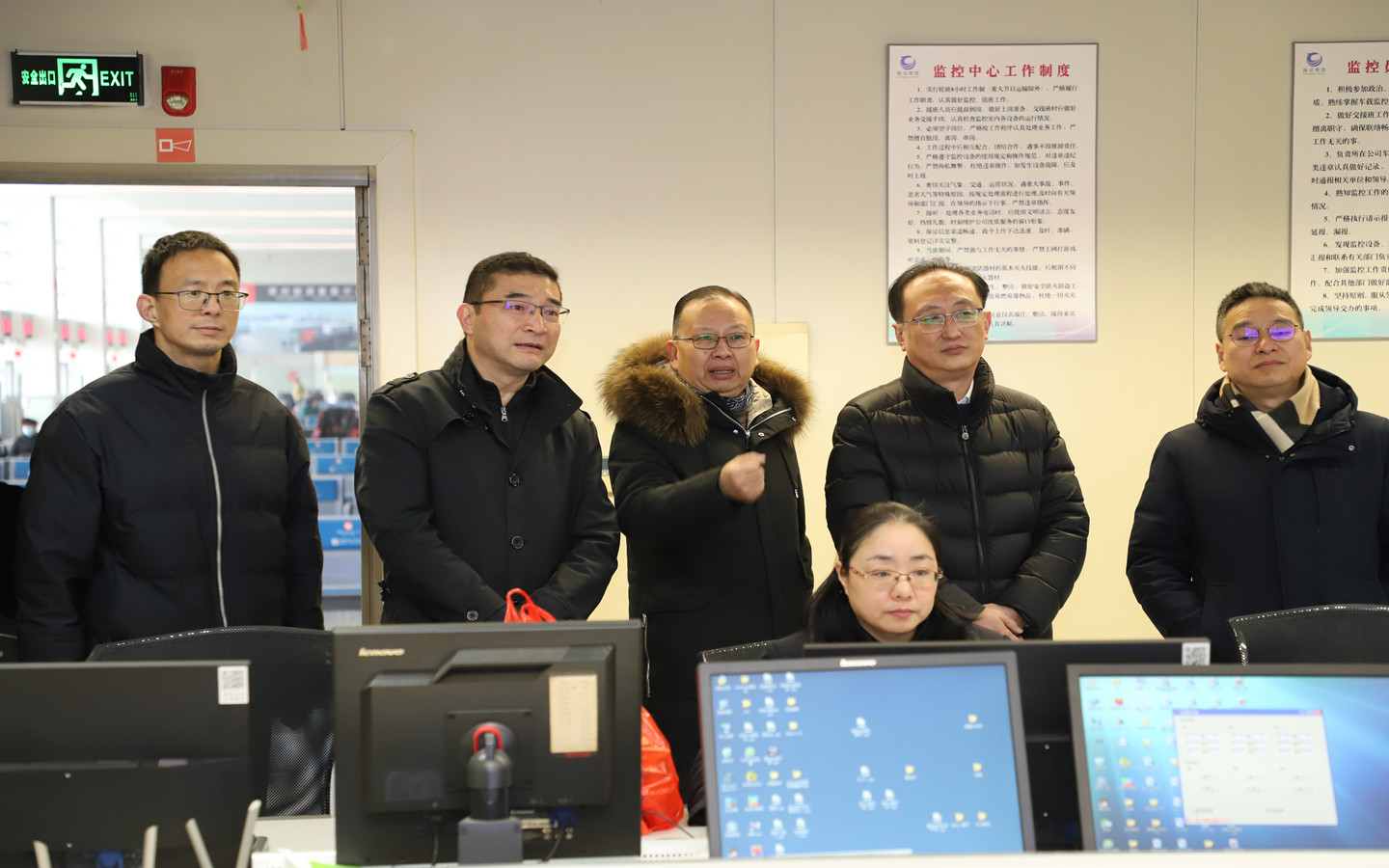 局領(lǐng)導一行代表市局對車站服務(wù)臺、售檢票窗口、監(jiān)控中心、調(diào)度室等地進行走訪,對堅守崗位的職工進行慰問并送上慰問品。朱平春介紹了公司春運期間的運力組織、服務(wù)保障及安全管理情況。局領(lǐng)導表示節(jié)假日期間要加強車輛及駕駛員的現(xiàn)場管理,保證行車安全,同時要不斷提升服務(wù)質(zhì)量,提供溫馨的乘車環(huán)境,確保旅客能夠順利返鄉(xiāng)。